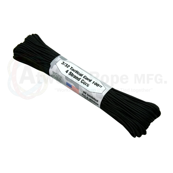 275 Cord – 3/32 Tactical 4 Strand core + sheath (5 Lines in one) Ultralight for those wanting a compact tactical cord UV Resistant Flexible Ties Well 275 Tactical Cord is 550 Paracord’s little Brother ( Half Size ) at 275 LBS Test. Its a must have for all outdoor and survival enthusiasts, as this rope has almost endless uses and qualities. Great for camping, backpacking, military, survival kits / bug out bags, ETC. Ideal for detailed use where 550 paracord is too thick and stiff where a more flexible and thinner cord is ideal. 100ft can be turned into hundreds. By pulling out the 4 inner strands, you can use them as individual cords. Specifications: Colour: Tactical Black Purpose/Use: Tactical Rope Diameter – 3/32″ / 2.4mm Tensile Strength – 275 lbs / 125 kg Weight (oz/100ft) – 4.8oz / 136g Material – Polyester / Nylon 4 Strand Core Color Will not run or bleed UV & Rot Resistant Made In The USA (TS01-BLACK)