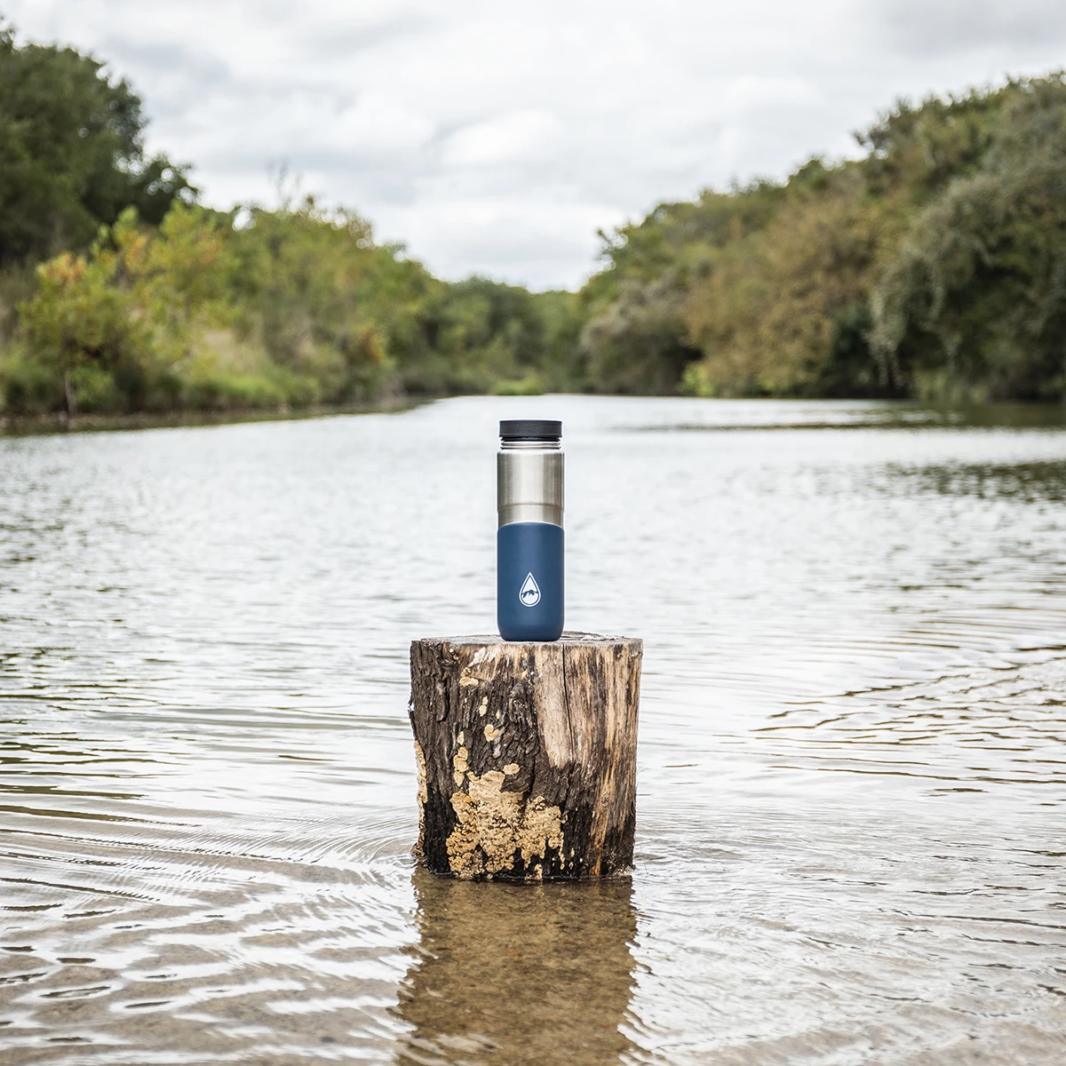 The Berkey Lookout Bottle is built tough from rust-resistant 18/8 304 stainless steel—ideal for camping trips, sporting events, workouts, school, on the job or every day. The bottle is condensation-free, has a slip-free grip, and won’t retain or transfer flavours. Fits most car cup holders and clips easily to a backpack with the included removable stainless steel clip. Its wide mouth makes it easy to add ice and easy to clean. Double-wall insulation keeps drinks warm or cold for up to 12 hours. Specifications: Colour: Blue / Steel Volume: 760 mL Keeps drinks warm or cold for up to 12 hours Height: Bottle with cap attached: 246 mm Height: Bottle alone: 217 mm, cap: 23 mm Width: 78 mm Weight (empty): 357 g Double-wall vacuum insulated Food-grade 18/8 304 stainless steel construction BPA-free bottle and cap Dishwasher safe or hand washable Included in the box: ● Berkey® Lookout™ Bottle – 760mL ● Easy-grip cap ● Removeable Carry clip ● Care and warranty information (SSBOT26BLUSTD)