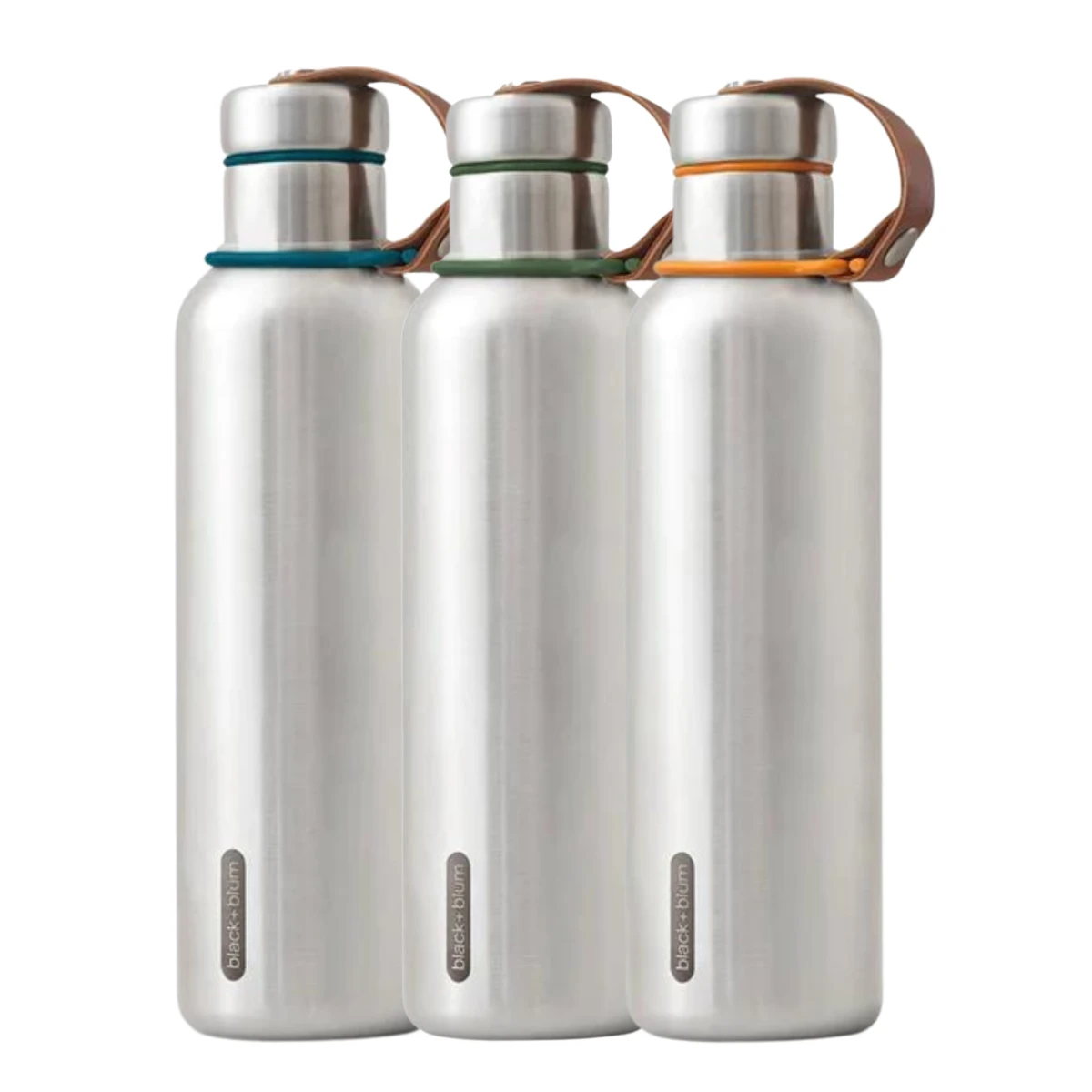 Black + Blum Insulated Water Bottle 750ml Black + Blum created a practical water bottle that would stand the test of time, with high-quality brushed steel and a faux leather strap, this bottle is functional design at its peak. Built with high-quality stainless steel, BPA Free and 100% leak-proof, it’s the most reliable water bottle yet. Plus it’s vacuum insulated and can keep your drink cold for up to 24 hours or 12 hours hot. Easily carry it by the sleek faux later strap. Choose between the subtle silicone seal and ring colour choice of Olive, Ocean or Orange. Features Vacuum Insulated – 24hrs Cold or 12 Hours Hot High-Quality Stainless Steel Easy Carrying – Faux Leather Strap ensures your lid won’t go missing Accessible Spout – Extra Wide, great for adding Ice Cubes & Easy Cleaning Steel Rim has an inside thread for an optimum drinking experience 100% Leak Proof BPA Free Specifications Colour: Olive, Ocean or Orange (Please Select Colour) Materials: Stainless Steel, Silicone & artificial leather Dimensions: 28.5cm (H) x 7.7cm (D) Size: 750ml Weight: 384g (BB-BAM-IWBB_P)