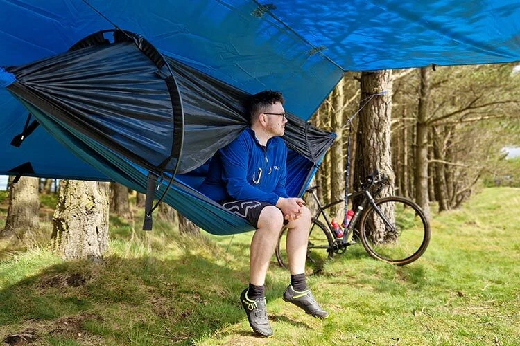 DD Steve Backshall Jungle Hammock Teal Blue DD has collaborated with Steve Backshall, the expert on what kind of products excel in the wilderness. Steve approached DD to design a hammock together, and after months of discussion and refining the design the culmination is the DD Steve Backshall Jungle Hammock: a comfortable, lightweight & innovative hammock that is ready for adventure in any corner of the world. Made from Recycled polyester – originating from over 200 plastic bottles. As well as helping to keep single-use plastic from our environment, this material is also comfortable and breathable for use in warm and humid conditions. Featuring an innovative suspension system that makes it easy to set up your hammock almost anywhere & a fully bugproof mosquito net suspended with an elastic cord that provides protection against biting insects, so you can sleep without worry wherever you pitch up. This Jungle Hammock is made with the outdoors in mind. Features: Simple and knotless suspension design featuring Amsteel loops linked via Carabiner to strong Daisy Chains Made from over 200 Recycled plastic bottles – Win-Win for You & the Environment Very breathable material, keeping you comfortable in a variety of climates and temperatures Mosquito net provides full protection against biting insects, even the tiny Scottish midge! One fully-curved spreader pole at the head end gives a spacious interior to the hammock and both sides suspended easily with elastic cord 2 x double-sided zippers for easy open and close 2 x internal hanging loops for torches, glasses, and other accessories 4 internal pockets to store small valuables – these can be used in any hammock set-up configuration! Stuff sack Specifications: Size: 2.7m x 1.4m (widest) Colour: Teal Blue Weight: 1050g (Excluding suspension & pole) Includes: DD Steve Backshall Jungle Hammock, 2 x Amsteel Loops, 2 x Carabiners, 2 x Daisy Chains,1 x Pole, 2 x Elastic Cord Weight limit: 125Kg (DDSteveBackshallHammock)