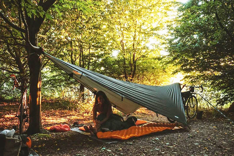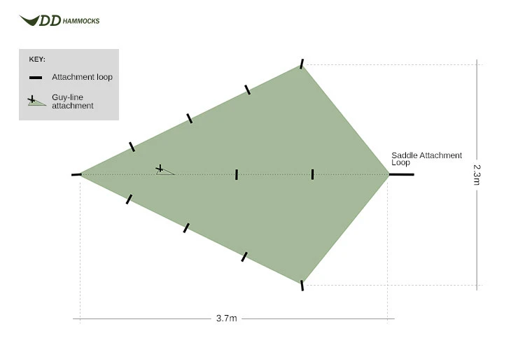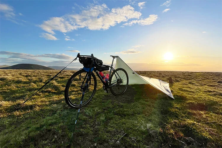 DD Bikepacker Tarp Ultra-light, ultra compact. Ideal to keep weight down while travelling on your bike. The DD SuperLight – Bikepacker Tarp is designed to give you freedom to pitch up anywhere on the trail, from a quiet roadside spot to an epic journey through the hills. Setting up in mere minutes using your bike as an aid, this tarp will provide shelter and a comfortable place to lie down for the night (or for a lunch stop!) before the journey continues. A sturdy bike anchor strap pegged over the handlebars keeps your bike upright, whilst the tarp is looped over your saddle and pegged out behind for a spacious & fully 1-person shelter in seconds Features Versatile – Not just for bikes! Despite the name, you don’t need a bike to use this tarp. With its’ innovative diamond-shaped design, plenty of peg loops, and a looped ridgeline this tarp can also be set up using ridgeline cord for an overhead shelter between trees, or even pegged into the ground and configured into a “plough-point” setup! A perfect option for a quick rain shelter, ground bivi camp, or keeping the wind off your stove during a lunchbreak. Ideal for Cyclers, Motor Bike Riders & Creative Adventurers Incredibly lightweight, weighing only 320g (tarp only – excluding pegs & bike anchor strap) 13 attachment loops – including 3 along the ridgeline and a longer loop for attaching over your saddle Included guy-line for pegging out the lowest attachment point on the ridge-line Strong bike anchor strap included with multiple loops for securing your bike Specifications Size: 3.7m x 2.3m Colour: Olive Green Weight: 320g (excluding pegs & bike anchor strap) Includes: 1x DD SuperLight Bikepacker Tarp, 8 x Pegs, 1 x Bicycle Anchor Strap, 2 x guy-line (DDBikepackerTarp)
