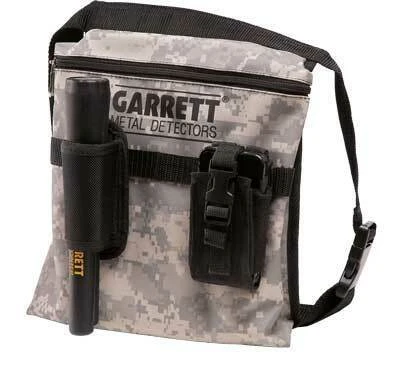 Garrett Camo Digger’s Pouch Great for carrying your treasure finds and other odds and ends as well as your Pro Pointer. Features: Rugged nylon with zip lid Shoulder strap with easy release clip Seperate internal zip compartment External nylon loop allowing attachment of pouches/holders Belt fits up to 48″ waist Weight: 145g Made in USA (GTPOUCH)