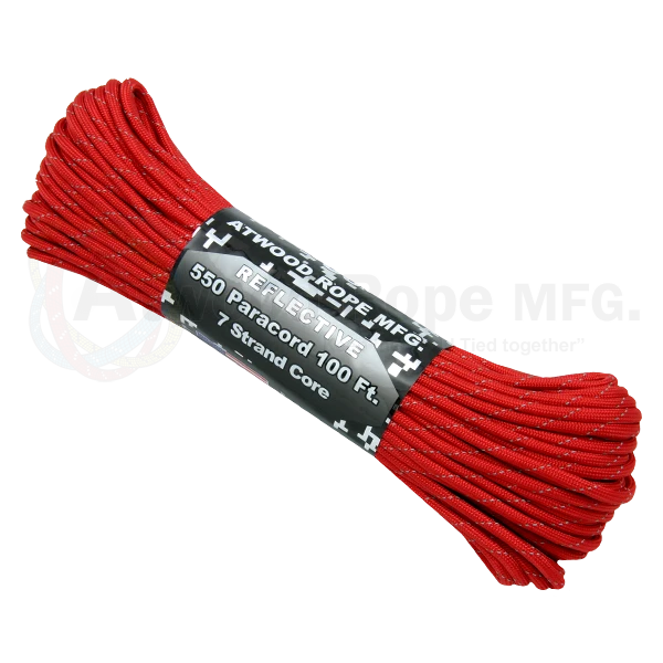 Ideal for Emergency Services Originally used by paratroopers in World War II as suspension lines for their parachutes. Once in the field, the paratroopers found many uses for it such as securing tarps, cargo, tents and even as boot laces. Now used as a general purpose utility cord by military personnel and civilians. Paracord was even used by astronauts during the STS-82 which was the second space shuttle mission to repair the Hubble Space Telescope. Reflective Paracord is one of the most versatile cords on the planet. It’s high-tech materials and construction enables it to be lightweight, strong, and compact. With an incredible 550 lb tensile strength, paracord can easily perform tasks and jobs that other similar cords cannot. One of the most important design features of paracord is the 7 inner strands of core. By pulling out the internal strands you can turn 50ft into hundreds of feet of usable cordage. All these features make it the perfect rope to daily carry, whether it’s in your backpack, vehicle, garage, or in an apparel item. Reflective Paracord is awesome! Super bright when light hits it, perfect for safety search lines, safety bracelets, lanyards, shoe laces, zipper pulls, key fobs, and anything else you want to find in low light. A must have for all outdoor and survival enthusiasts. This rope has almost endless uses and qualities. Great for survival bracelets, camping, backpacking, military, survival kits / bug out bags, ETC. Atwood Rope Reflective Paracord is superior in quality and consistency. Atwood maintain a strict quality assurance policy with intravenous QA checkpoints throughout the manufacturing process. Atwood take great pride and honor in manufacturing and delivering some of the highest quality Paracord and products around the world that can be trusted and relied on every day. Specs: Length: 100ft (30m) Colour: Reflective Red Reflective Stripe Diameter – 5/32″ (4mm) Tensile Strength – 550 lb. (249 kg) Weight (oz/100ft) – 8oz (227g) 7 Strand Core (8 lines in 1 ) Lightweight & Strong Color will not run or bleed UV, Rot, Mildew Resistant Made in the USA (ARMPARA550100REFRED)