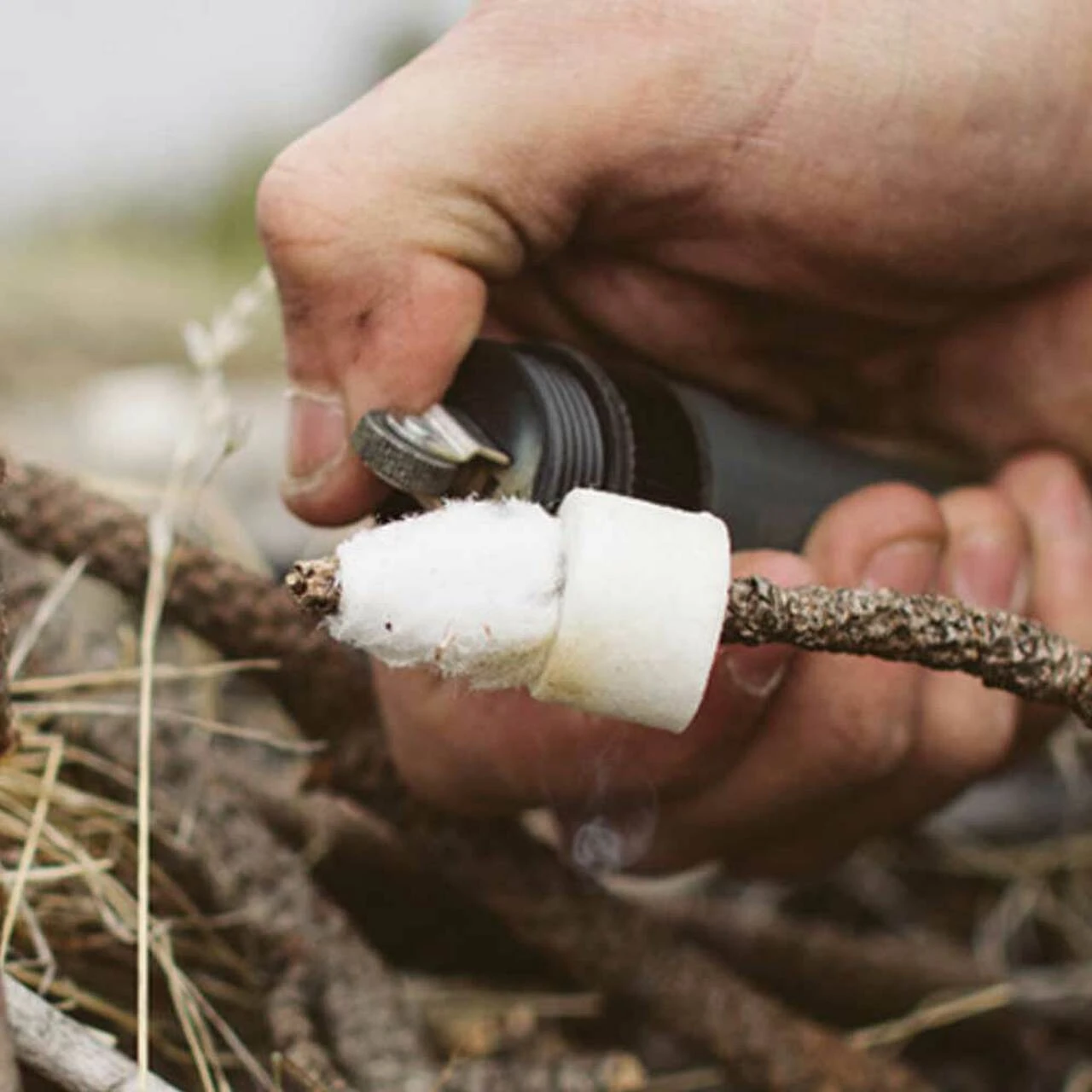 Zippo Emergency Fire Kit with Waterproof Storage Canister Designed to save the day, the Emergency Fire Kit comes through when others turn back. Its compact and high-calibre construction packs enough punch to overpower bleak conditions and fire up your campsite at a moment’s notice. Features Zippo flint spark wheel Includes 5 easy lightweight paraffin wax-coated spark tinder Reliable sparking in any weather condition – Ignites with spark or flame and burns up to 5 minutes Rugged ABS plastic construction Ergonomic design with textured grip; Water-resistant storage/o-ring seal Stores flint-wheel ignition & five (5) included Easy Spark Tinders Floats in water & keeps flint-wheel ignition & tinder dry Reusable, durable & lightweight for long-lasting use Easy one-hand use & provides sturdy grip Provides attachment point for use in pocket, go-bag, or on-pack Plenty of time to get a fire started Provides more flexibility & control while lighting fire Specifications Height:10.16cm Width: 2.8702cm Depth:3.5052cm Weight: 60grams approx (40625)